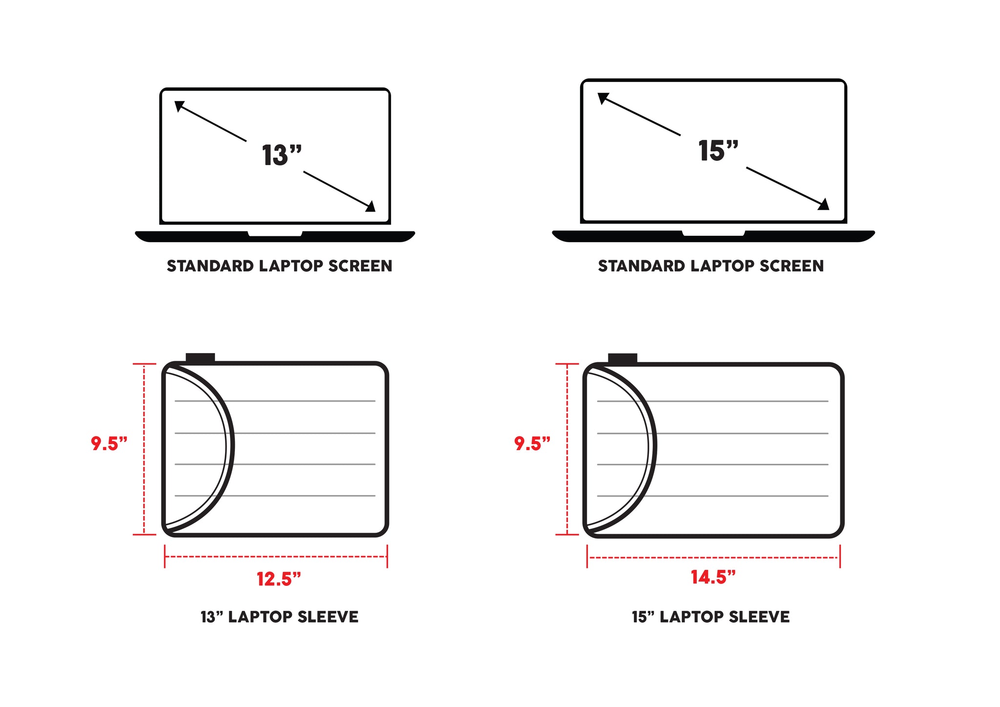 15" Laptop Sleeve: 15" x 10.25" x 0.75"